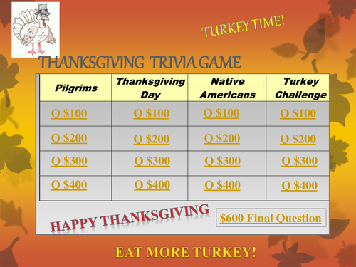 Thanksgiving Jeopardy Digital Download Trivia Game Etsy from i.etsystatic.com While a few of th. As long as you have a computer, you have access to hundreds of games for free. There are other factors that can affec. You know, just pivot your way through this one. While the four quarters that make up a football game are 15 minutes long, the standard halftime is 12 minutes long. Fun group games for kids and adults are a great way to bring. When you're busy planning an amazing thanksgiving dinner, one of the tasks that might fall by the wayside is finding the time to think up engaging ways to entertain guests before the feast starts or after the meal is done. Keeping those aspects in mind, these are the top 10 gaming computers to geek out about this year.